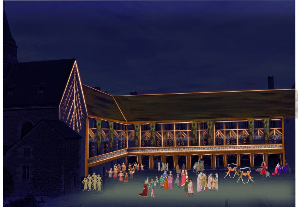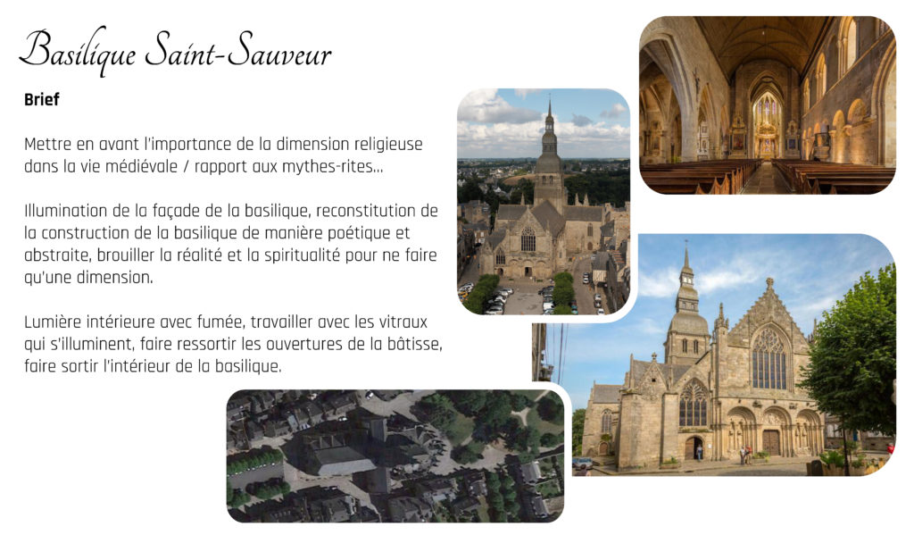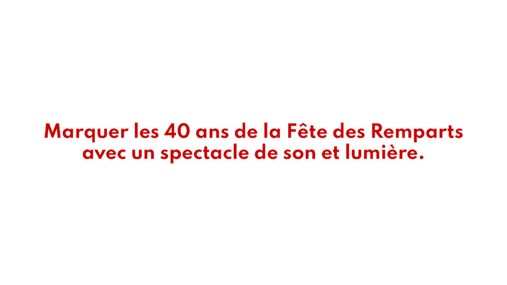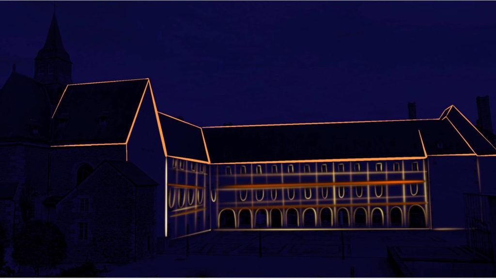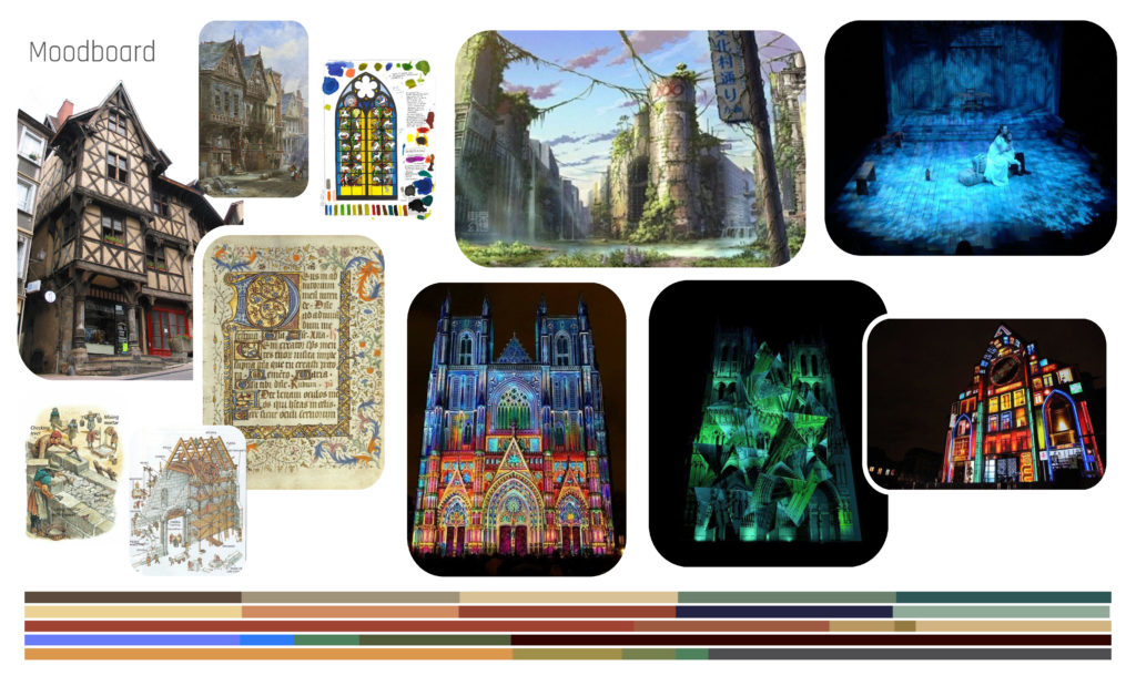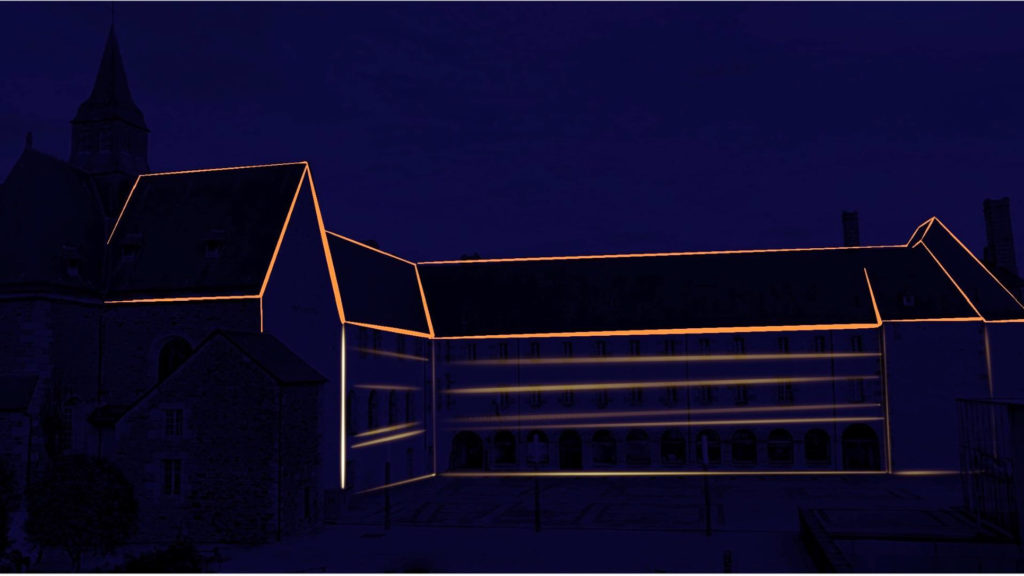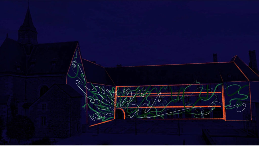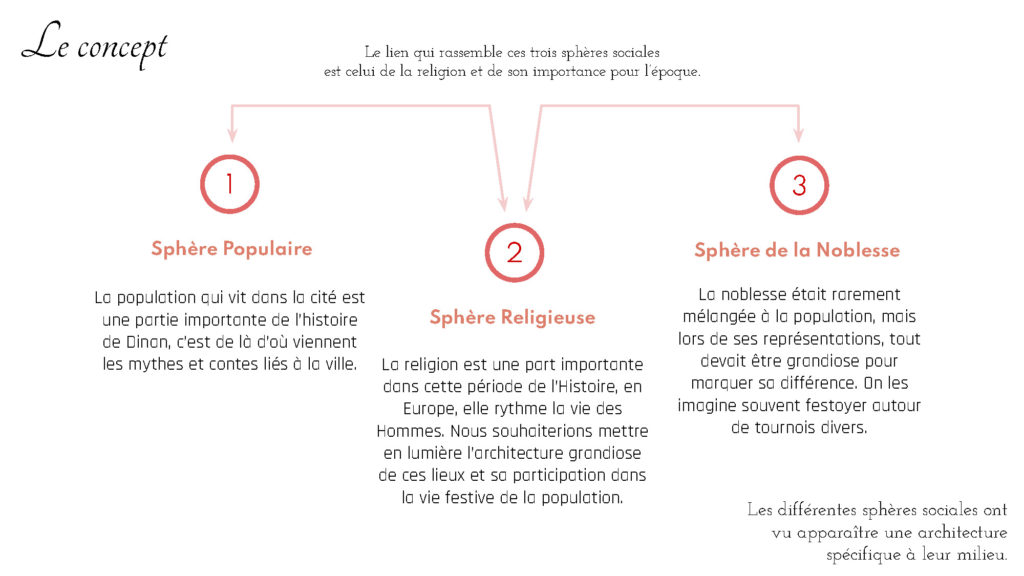 L’Association La Fête des Remparts a fait appel aux services de 109 pour les accompagner sur leur 40ème édition anniversaire. L’association a émis le souhait de moderniser cette fête dinannaise mythique avec un spectacle de son et lumière. En charge d’imaginer une trame ludique et pédagogique utilisant les nouvelles technologies, j’ai souhaité mettre en avant les sphères sociales à travers l’architecture à la suite de nombreuses recherches historiques et sensibles.